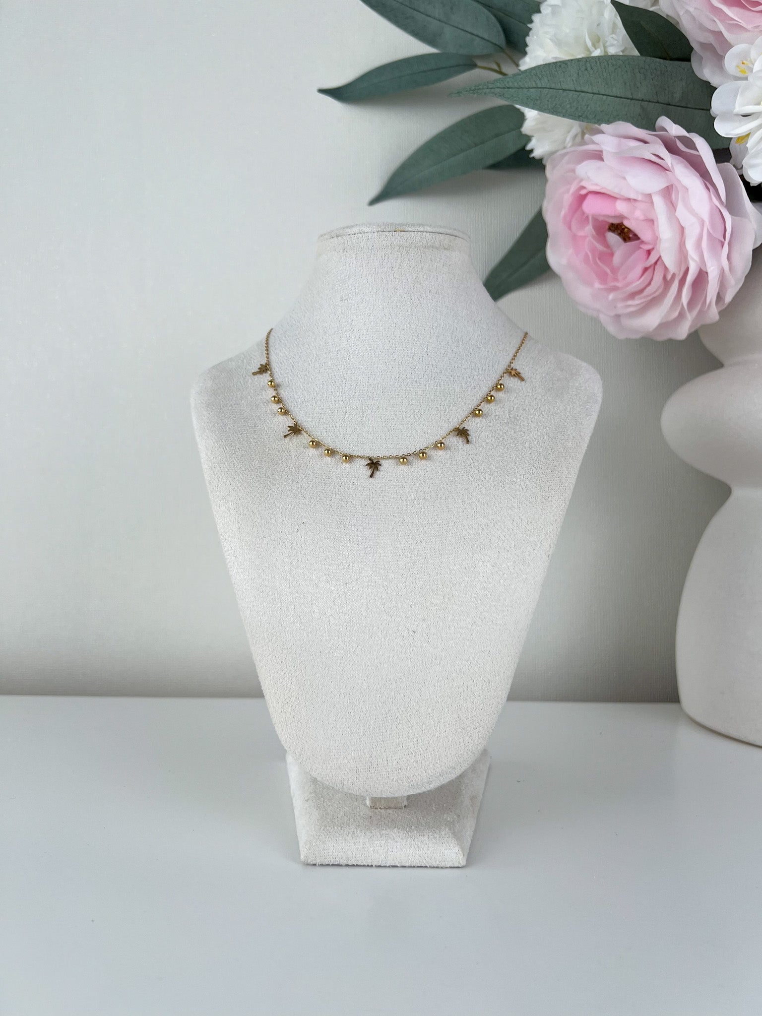 Fijn kettinkje met balletjes en palmboompjes