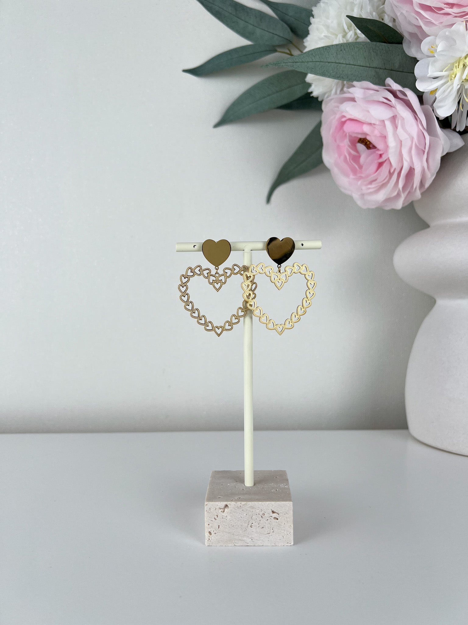 Oorbellen hart met open hartjes