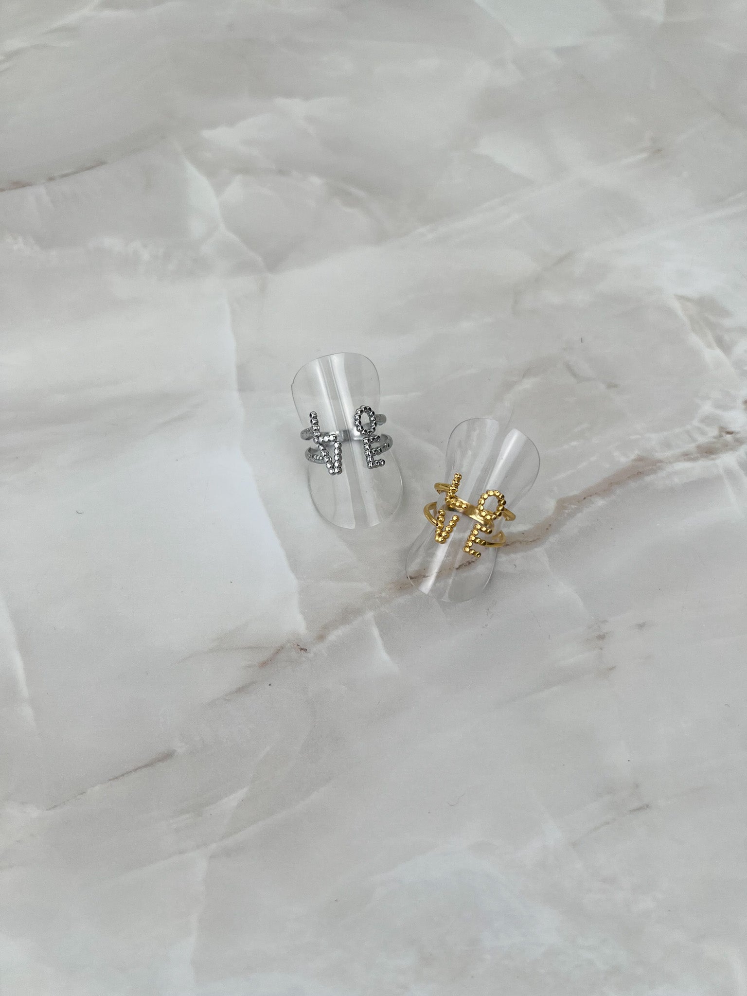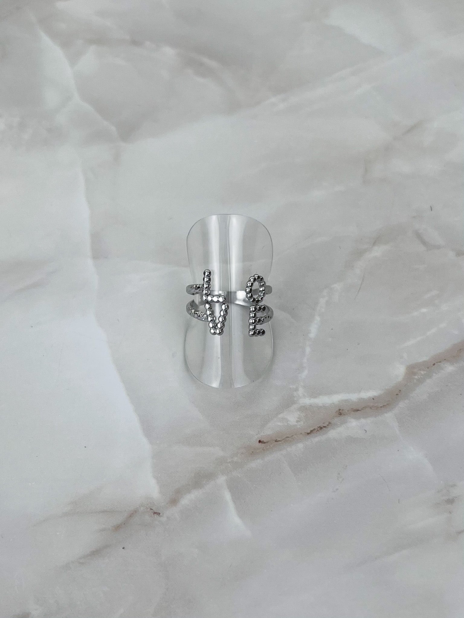 De ring is gemaakt van stainless steel, waardoor hij waterbestendig is en niet verkleurt. De ring is ‘one size’ en verstelbaar, zodat je hem kunt aanpassen naar jouw vinger.