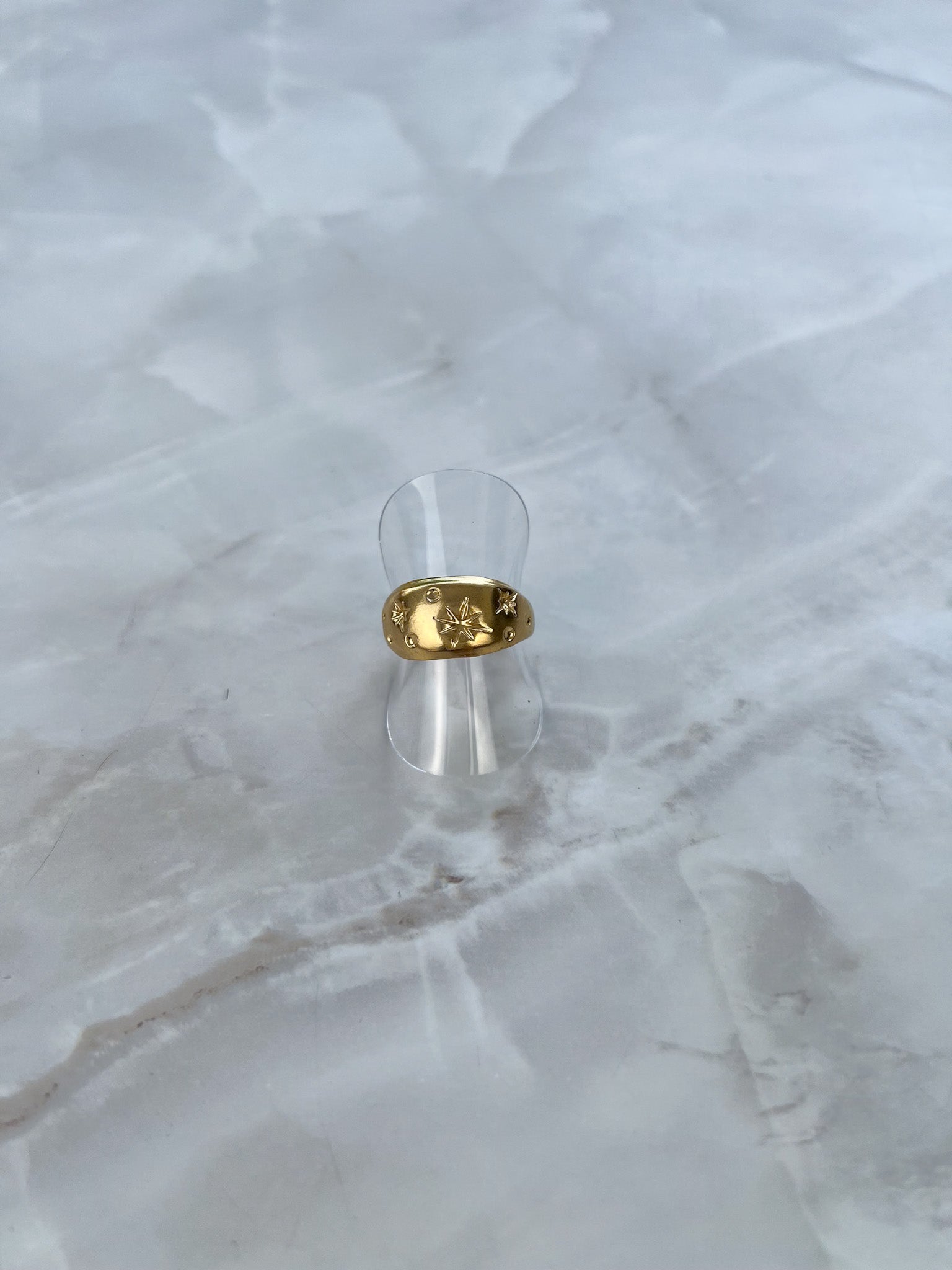 De ring is gemaakt van stainless steel, waardoor hij waterbestendig is en niet verkleurt. De ring is ‘one size’ en verstelbaar, zodat je hem kunt aanpassen aan jouw vinger.