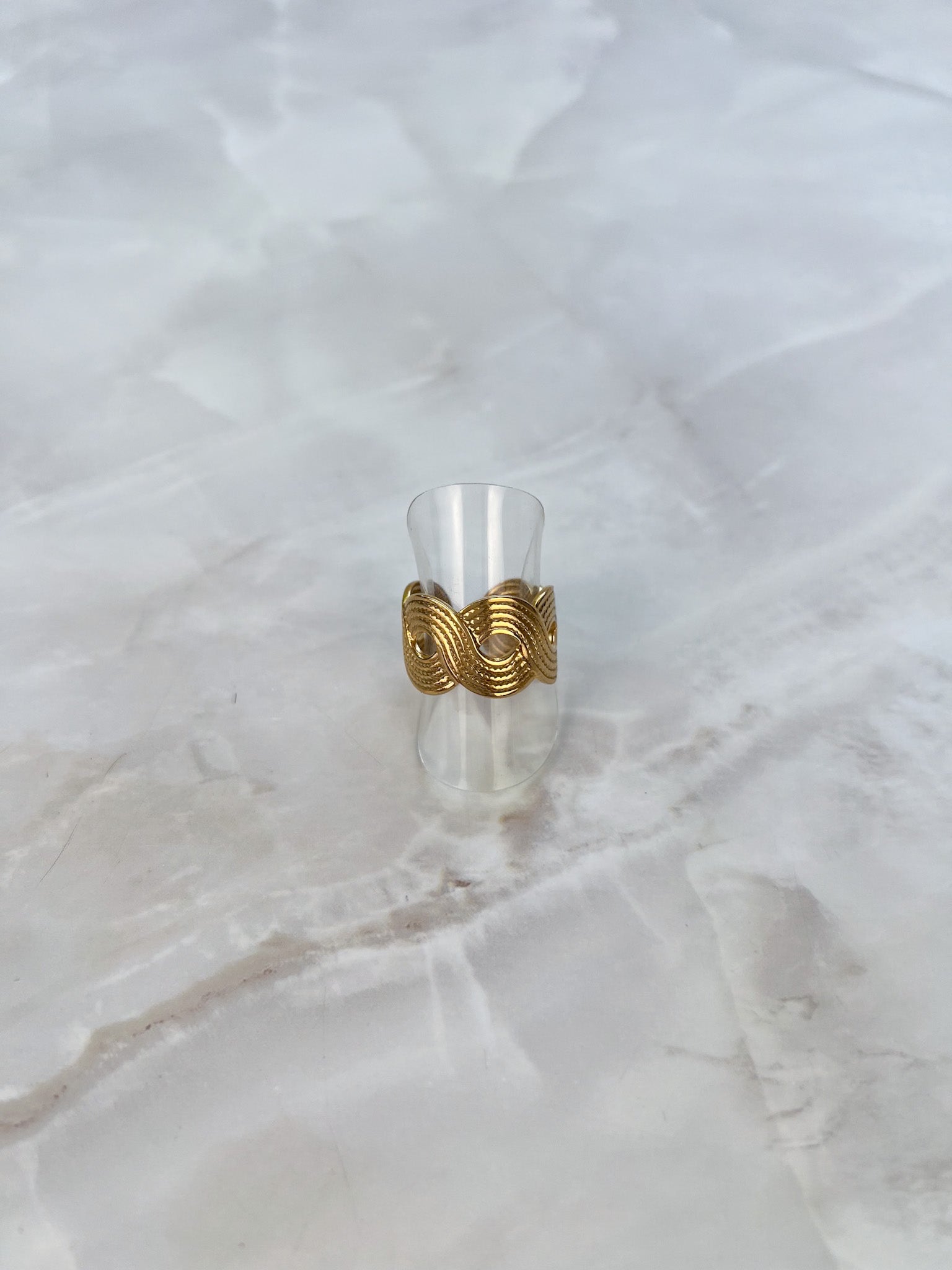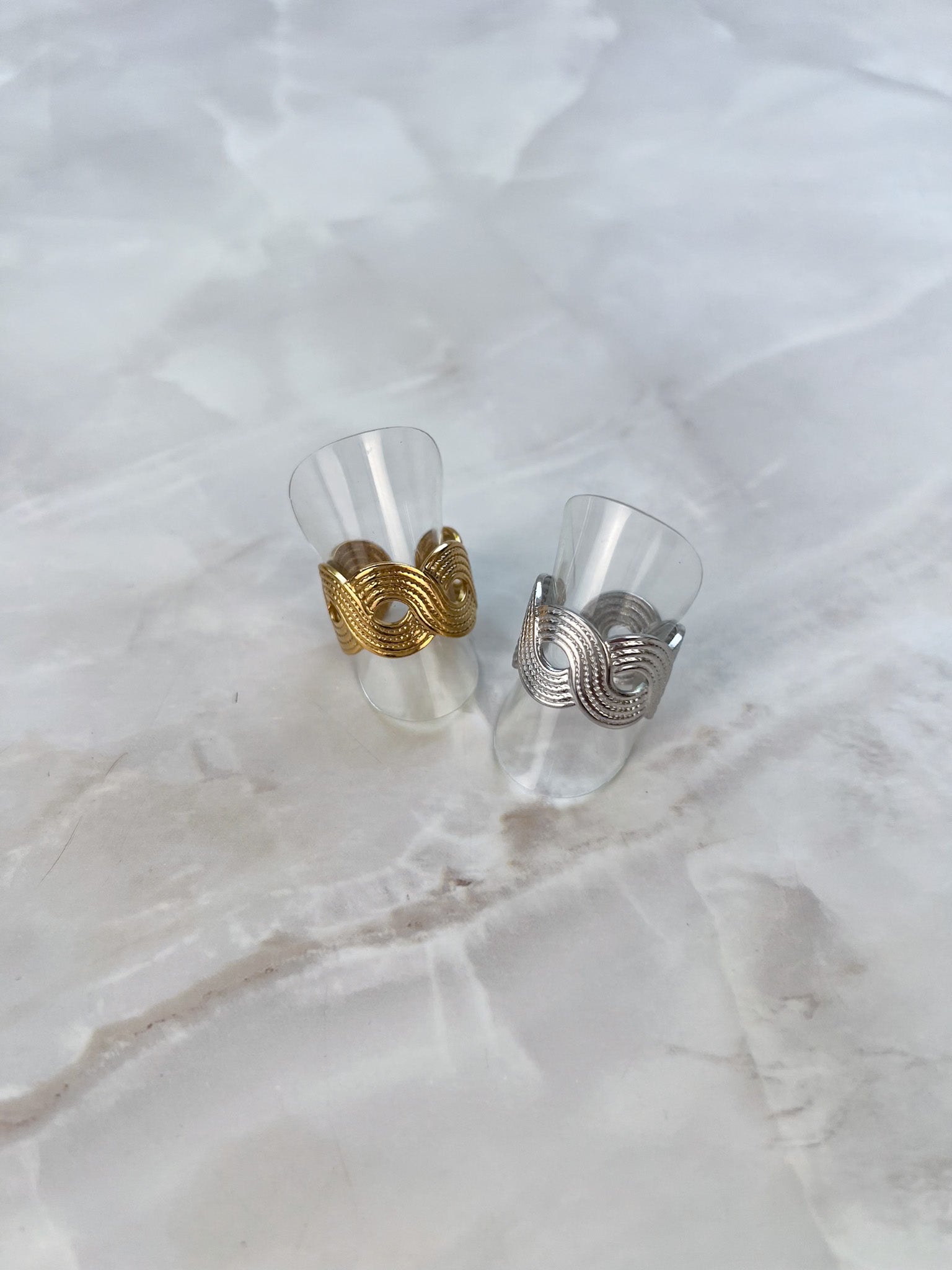 De ring is gemaakt van stainless steel, waardoor hij waterbestendig is en niet verkleurt. De ring is ‘one size’ en verstelbaar, zodat je hem kunt aanpassen aan jouw vinger.